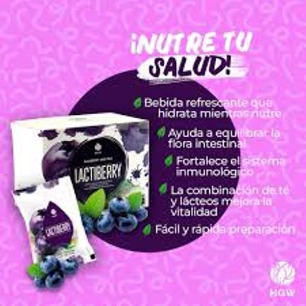 Vida util: 12 meses.Lactiberry de HGW es una bebida instantanea premium que combina arandanos, te negro y leche de Nueva Zelanda. Mejora la digestion, reduce el estres y aporta energia natural. ¡Compra tu caja de 10 sachets en Colombia hoy mismo!